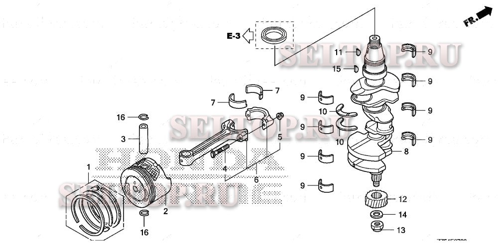 Коленвал, поршень для Honda BF50D LRTA, взрыв-схема: