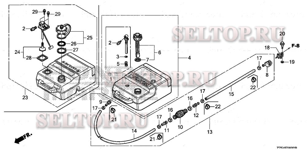 Топливный бак для Honda BF50D LRTA, взрыв-схема:
