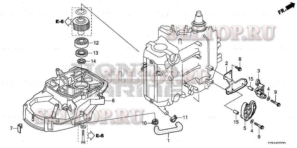 Основной корпус редуктора для Honda BF50DK2 LRTA, взрыв-схема:
