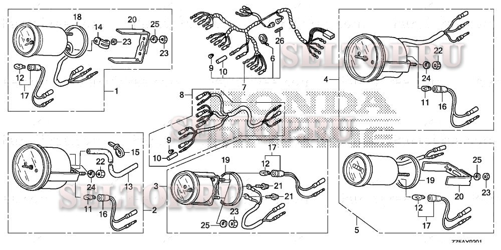 Комплект приборов (analog) для Honda BF50DK2 XRTA, взрыв-схема: