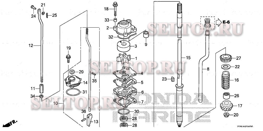 Водяной насос для Honda BF50DK2 XRTA, взрыв-схема: