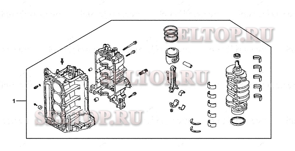 Шорт-блок для Honda BF75A4 LRTA, взрыв-схема: