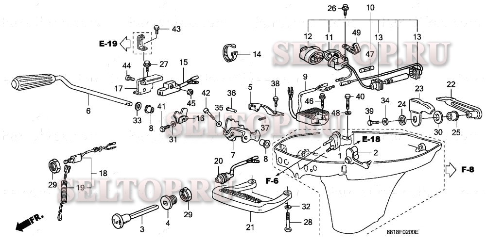 Ось вилки переключения для Honda BF8A3 SA, взрыв-схема: