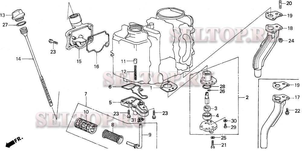 Масляный насос для Honda BF8AM LA, взрыв-схема: