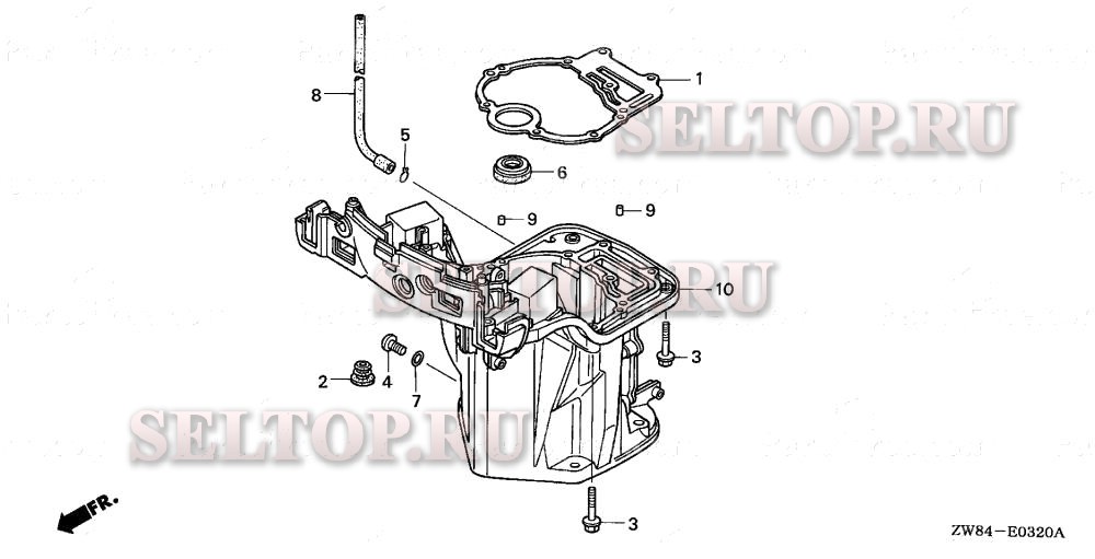Корпус с датчиком уровня масла для Honda BF8D2 SRA, взрыв-схема: