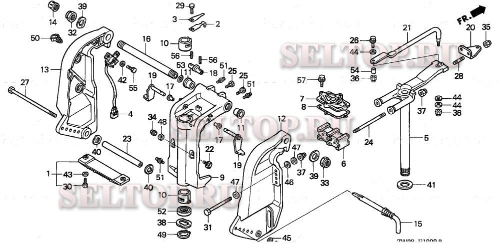 Кормовой кронштейн, корпус вертлюга для Honda BF90A1 LRTA, взрыв-схема: