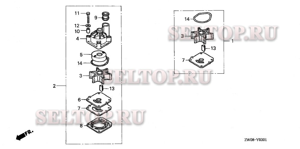 Центробежный насос для Honda BF90A4 JHTA, взрыв-схема: