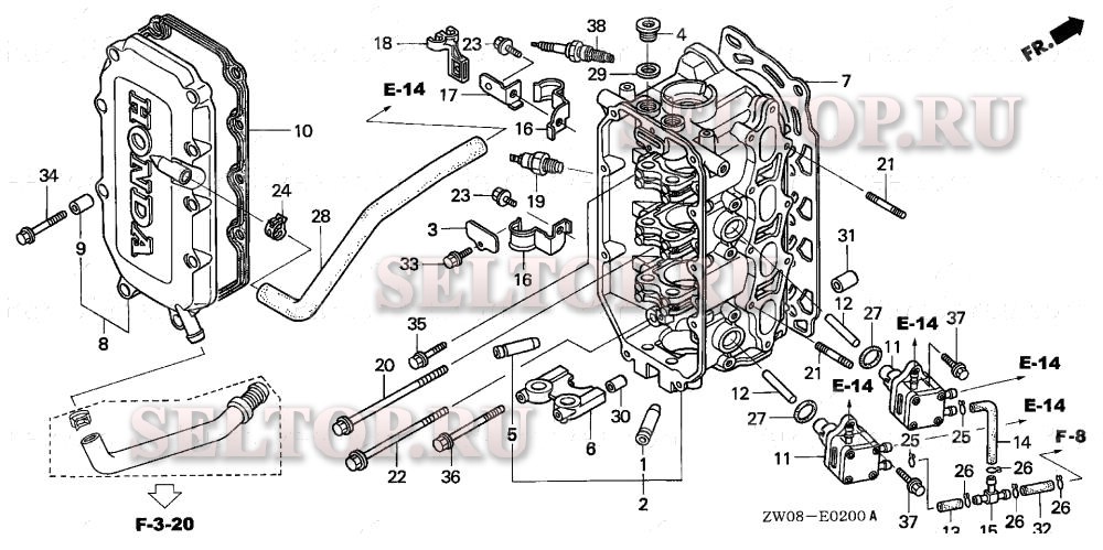 Головка цилиндра для Honda BF90A4 JHTA, взрыв-схема: