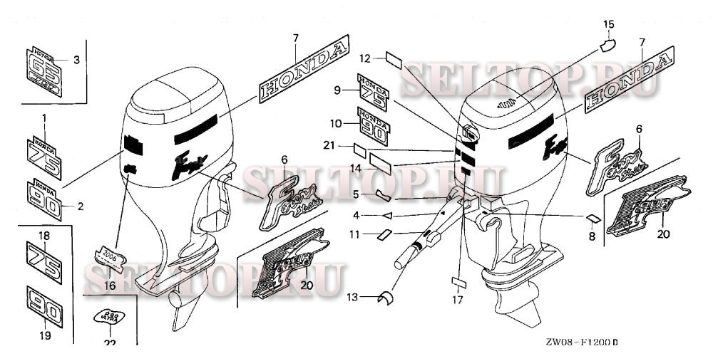 Этикетки для Honda BF90A4 LHTA, взрыв-схема: