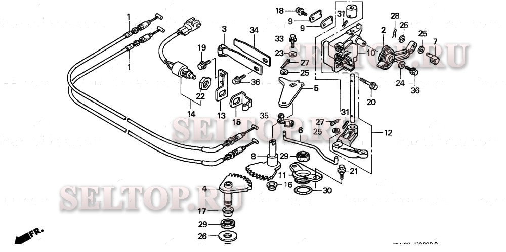 Ось вилки переключения для Honda BF90A4 LRTA, взрыв-схема:
