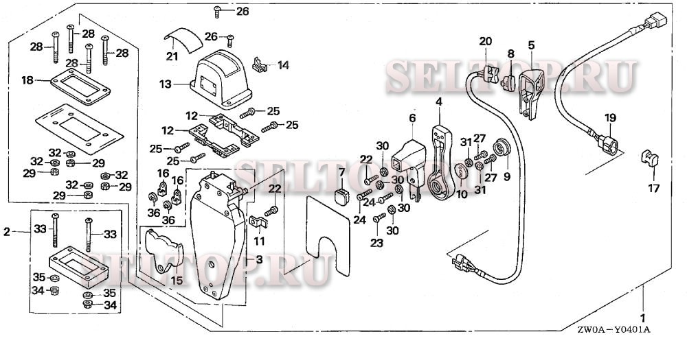 Дистанционное управление (верхняя опора однотипная) (левая) для Honda BF90A5 XRTA