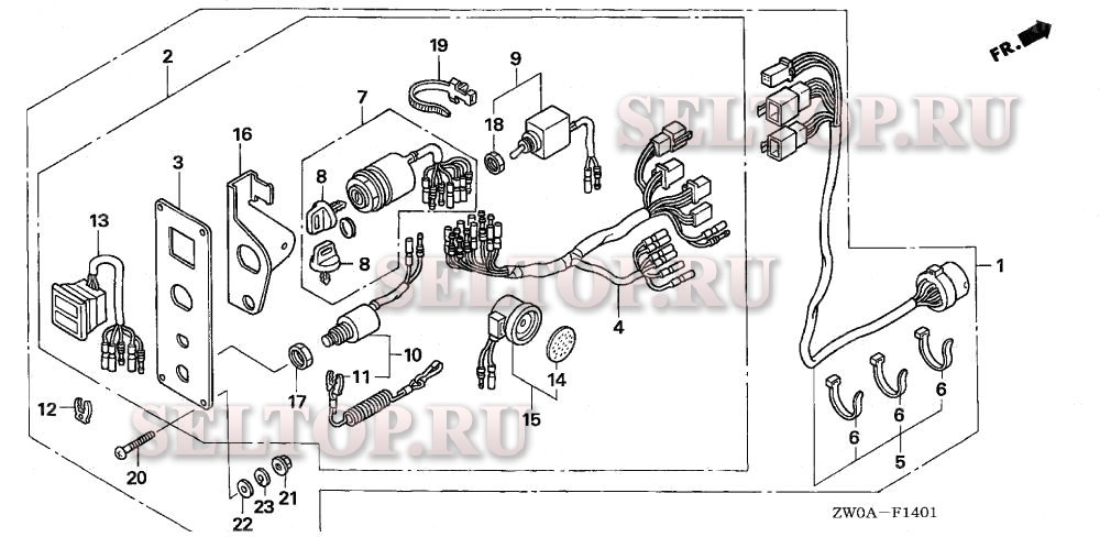 Панель управления (2) для Honda BF90A5 XRTA, взрыв-схема: