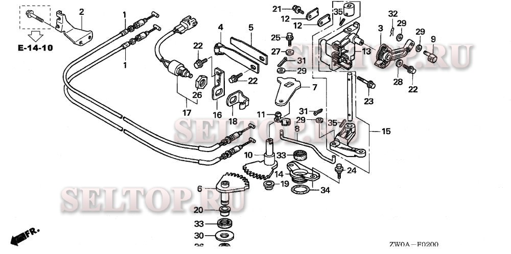 Ось вилки переключения для Honda BF90A6 JHTA, взрыв-схема: