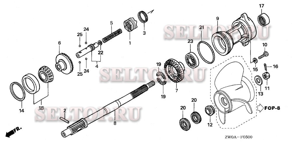 Карданный вал, гребной винт для Honda BF90A6 LHTA