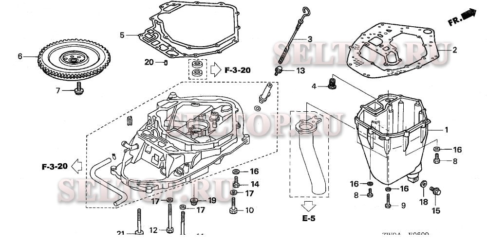 Маховик, масляный поддон для Honda BF90A6 LHTA, взрыв-схема: