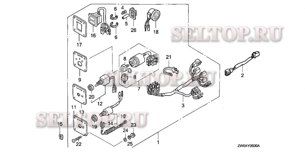 Панель управления kit для Honda BF90A6 LHTA, взрыв-схема: