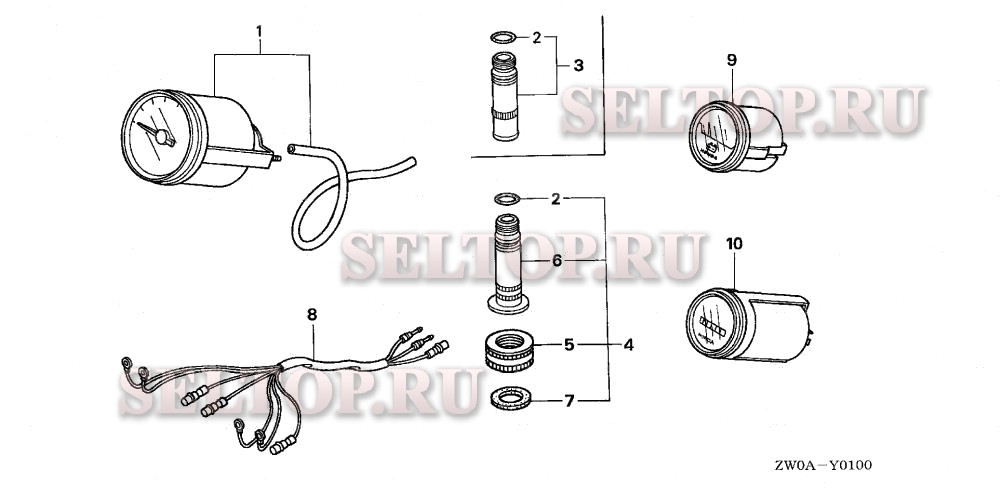 Спидометр (1) для Honda BF90A6 LHTA, взрыв-схема: