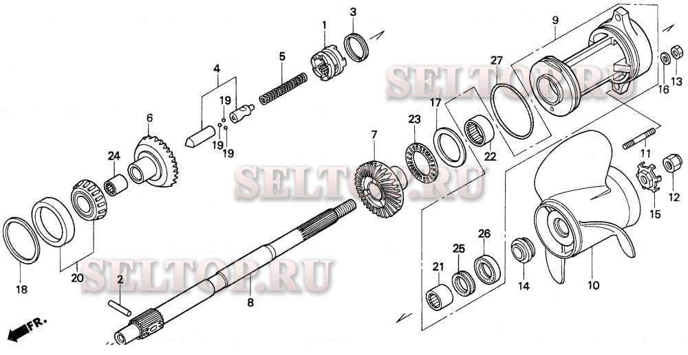 Гребной винт (1) для Honda BF90AW JRTA, взрыв-схема: