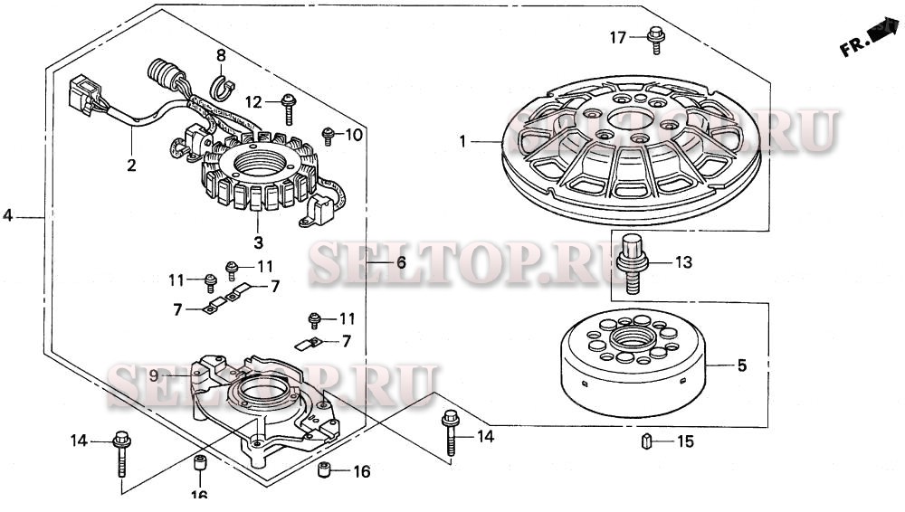 Генератор для Honda BF90AW LRTA, взрыв-схема: