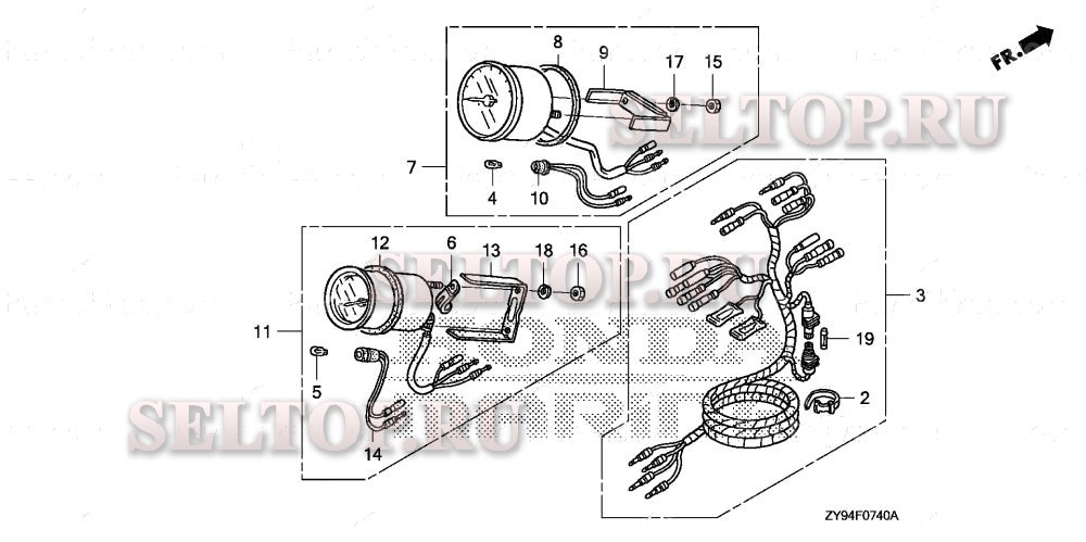 Дифферентометр, тахометр для Honda BF90DK0 LRTA, взрыв-схема: