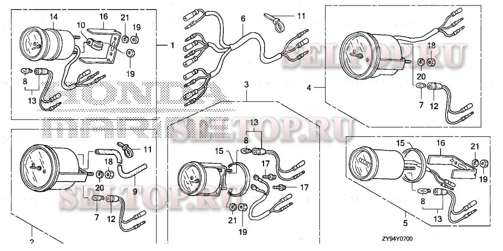 Спидометр для Honda BF90DK0 LRTA, взрыв-схема: