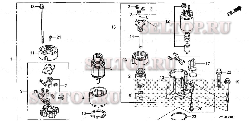 Стартер для Honda BF90DK0 LRTA, взрыв-схема: