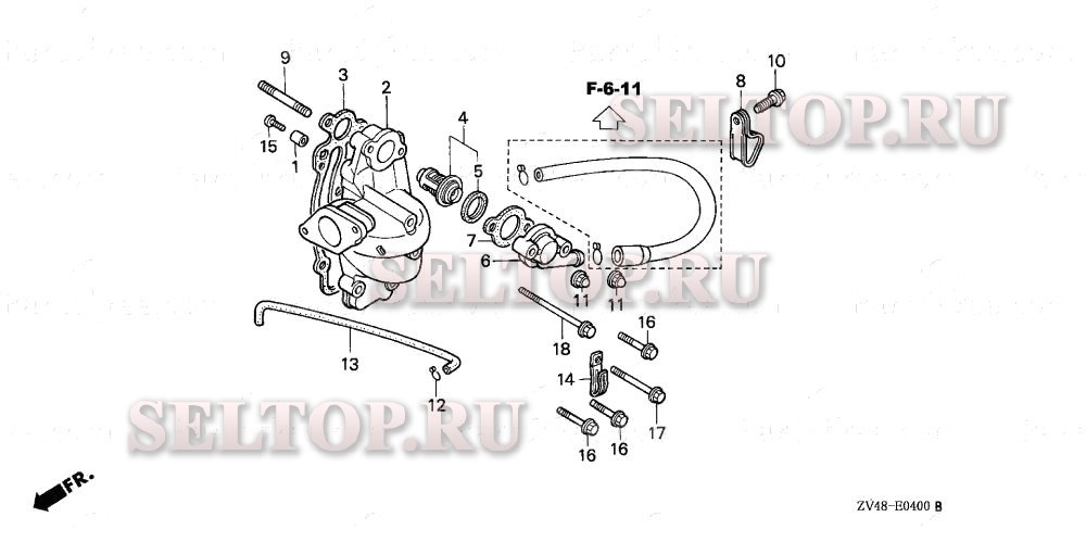 Всасывающий патрубок, термостат для Honda BF9.9AY LAS, взрыв-схема: