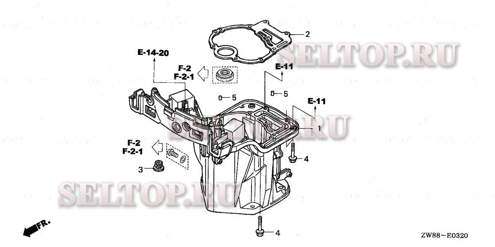 Корпус с датчиком уровня масла для Honda BF9.9D4 LHSA, взрыв-схема: