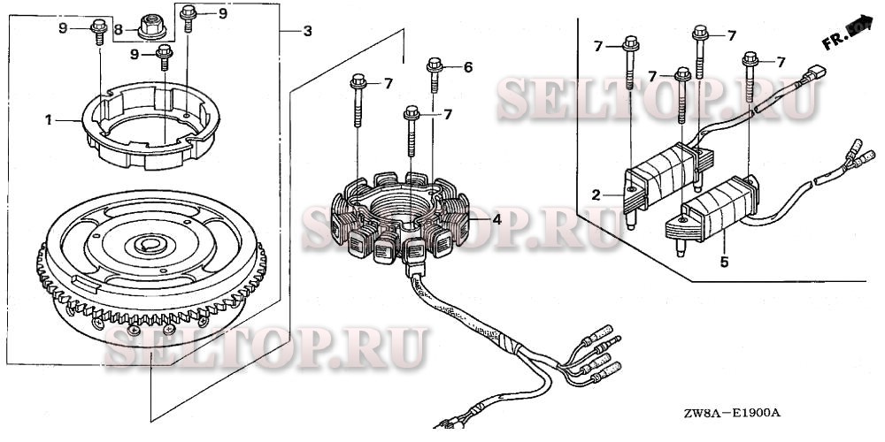 Маховик для Honda BF9.9D6 LHA, взрыв-схема: