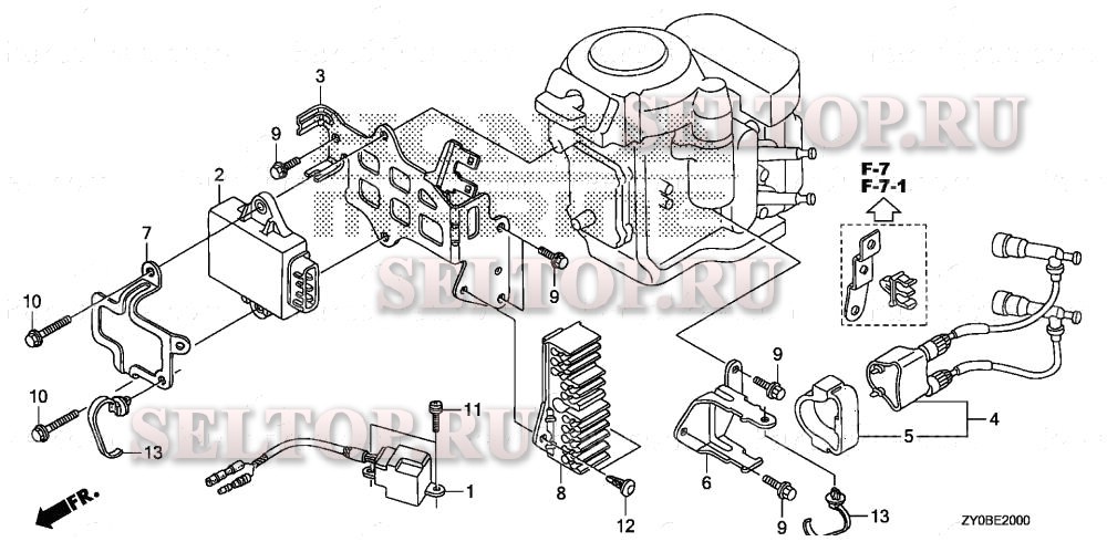 Катушка зажигания + c.d.i. unit для Honda BFP15DK0 XHTA, взрыв-схема: