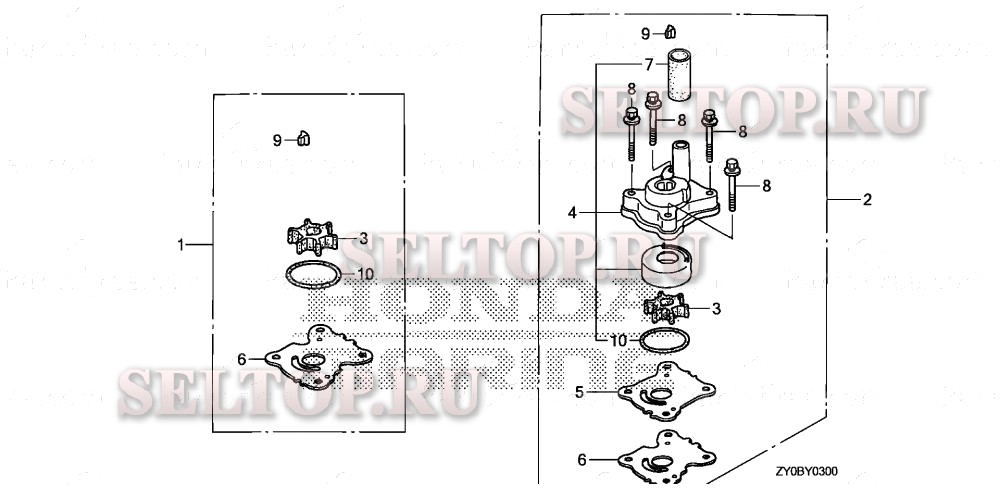 Крыльчатка насоса для Honda BFP15DK0 XHTA, взрыв-схема:
