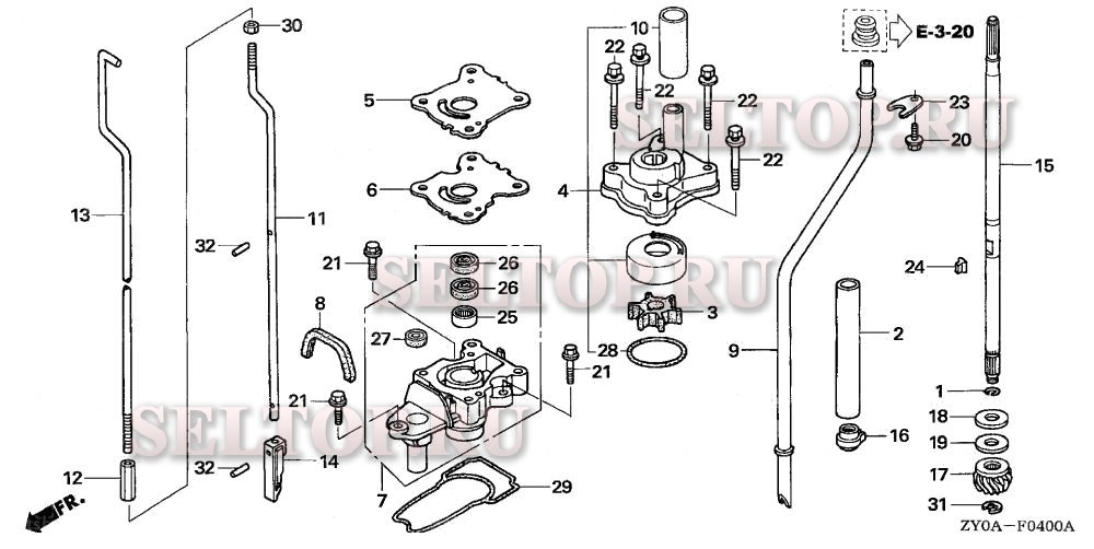 Водяной насос, вертикальный вал (1) для Honda BFP20D5 LRTA