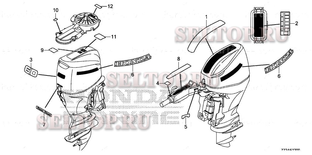 Этикетка для Honda BFP60AK1 LRTB, взрыв-схема: