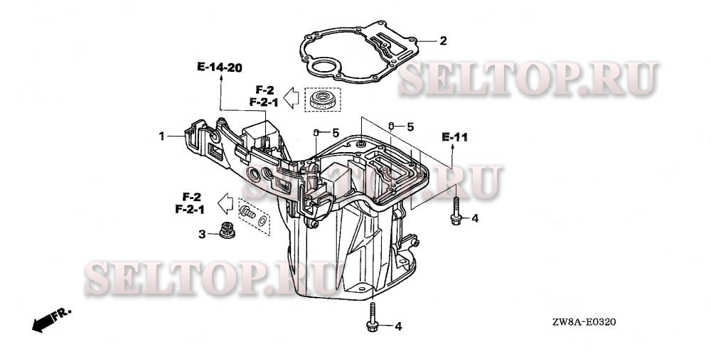 Корпус с датчиком уровня масла для Honda BFP8D5 LHA, взрыв-схема:
