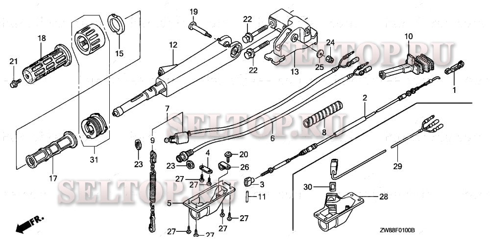 Рукоятка для Honda BFP9.9D3 XHA, взрыв-схема: