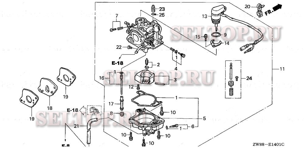 Карбюратор (auto) для Honda BFP9.9D3 XHSA, взрыв-схема: