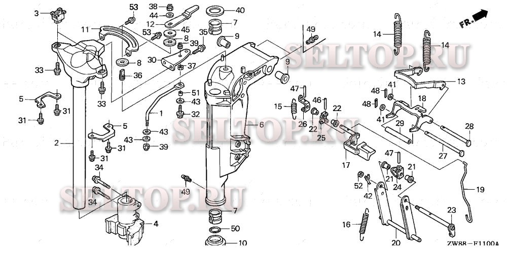 Корпус вертлюга (1) для Honda BFP9.9D3 XHSA, взрыв-схема: