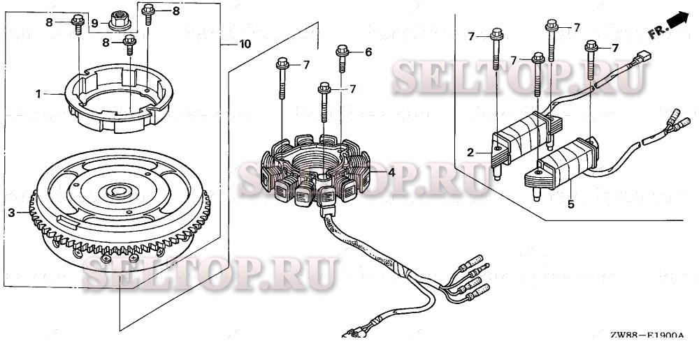 Маховик для Honda BFP9.9D3 XHSA, взрыв-схема: