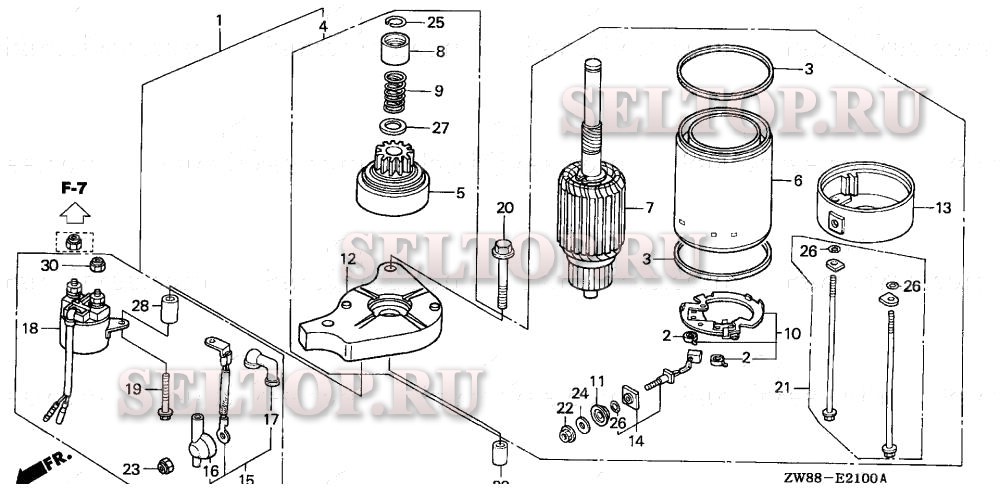 Стартер для Honda BFP9.9D3 XHSA, взрыв-схема: