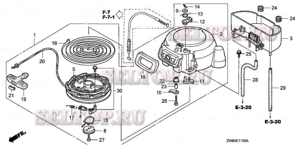Ручной стартер для Honda BFP9.9D5 XHSA, взрыв-схема: