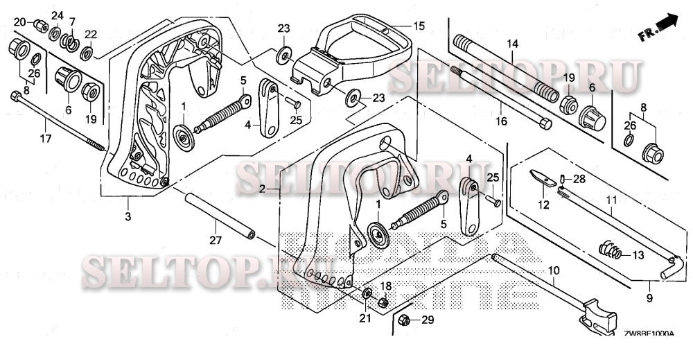 Кормовой кронштейн (1) для Honda BFP9.9DK0 LHA, взрыв-схема: