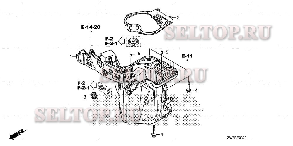 Корпус с датчиком уровня масла для Honda BFP9.9DK0 LRA, взрыв-схема: