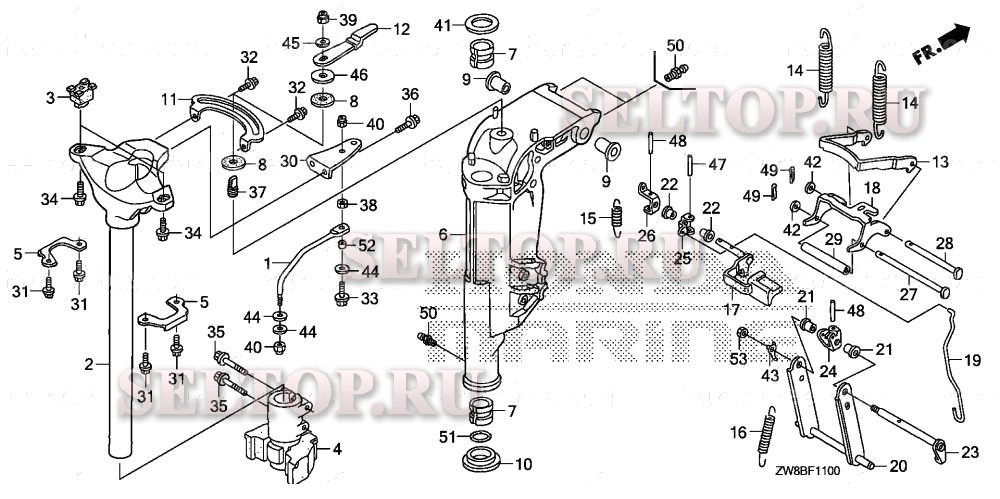 Корпус вертлюга (1) для Honda BFP9.9DK0 LRA, взрыв-схема: