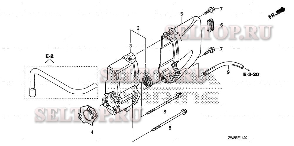 Крышка глушителя для Honda BFP9.9DK0 LRA, взрыв-схема: