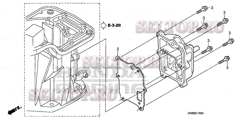 Крышка выпускного коллектора для Honda BFP9.9DK0 LRA, взрыв-схема: