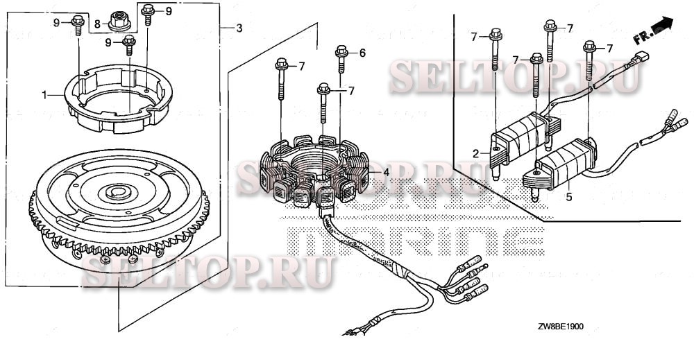 Маховик для Honda BFP9.9DK0 LRA, взрыв-схема: