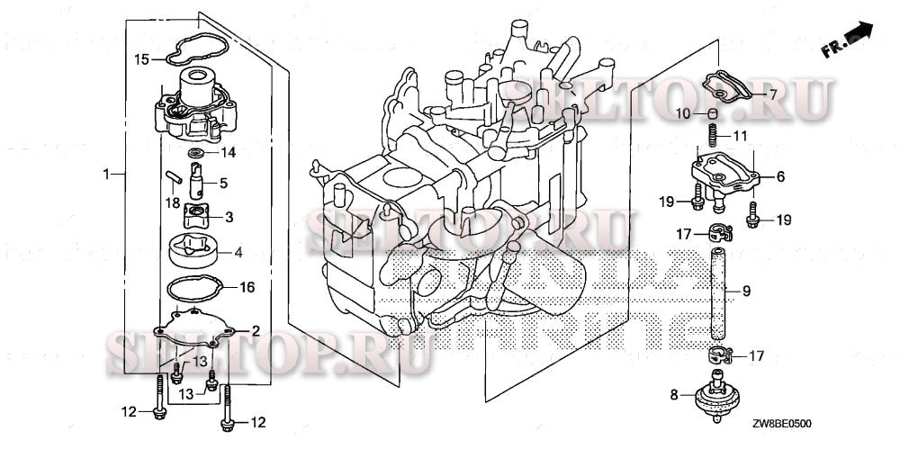 Масляный насос для Honda BFP9.9DK0 LRA, взрыв-схема: