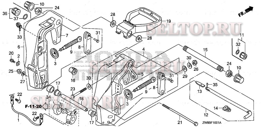 Кормовой кронштейн (2) для Honda BFP9.9DK0 XRTA, взрыв-схема: