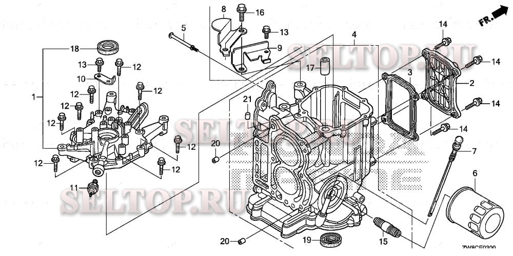 Блок цилиндров, крышка картера для Honda BFP9.9DK3 XHA, взрыв-схема: