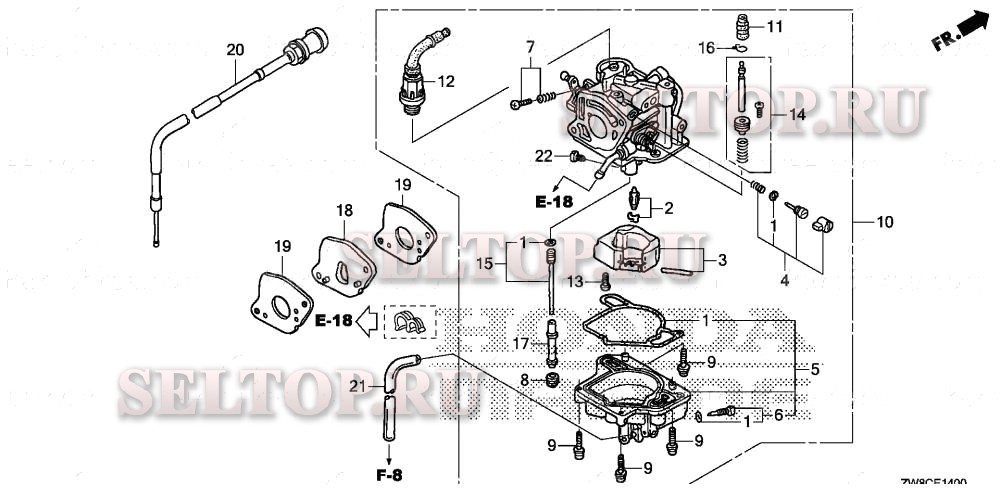 Карбюратор (manual) для Honda BFP9.9DK3 XHA, взрыв-схема: